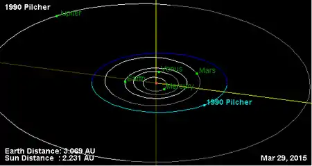 Орбита астероида Пильчер и его положение в Солнечной системе