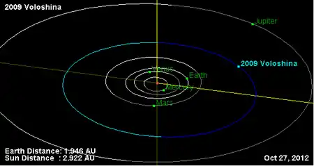 Орбита астероида Волошина и его положение в Солнечной системе