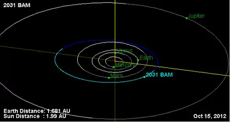 Орбита астероида БАМ и его положение в Солнечной системе