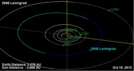 Орбита астероида Ленинград и его положение в Солнечной системе