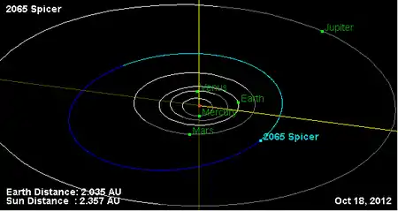 Орбита астероида Спайсер и его положение в Солнечной системе
