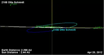 - Орбита астероида Отто Шмидт и его положение в Солнечной системе
