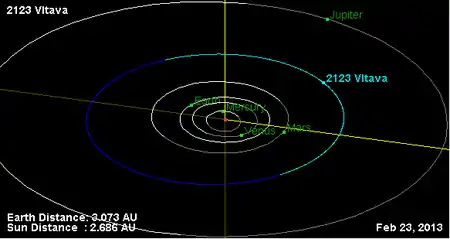 Орбита астероида Влтава и его положение в Солнечной системе