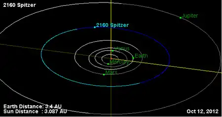 Орбита астероида Спитцер и его положение в Солнечной системе