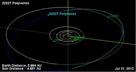 - Орбита астероида Поликсен и его положение в Солнечной системе