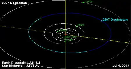 Орбита астероида Дагестан и его положение в Солнечной системе