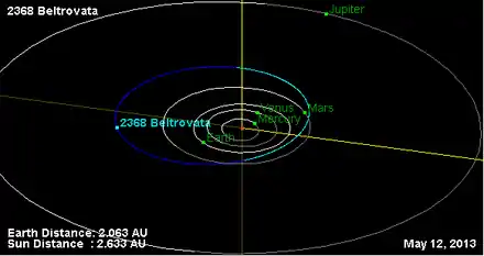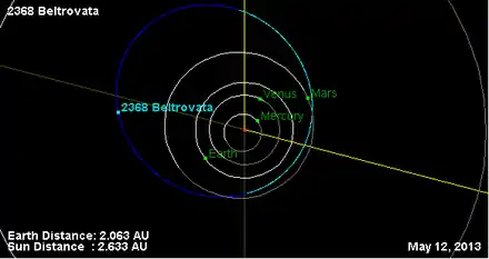 - Орбита астероида Бельтровата и его положение в Солнечной системе