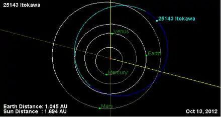 - Орбита астероида Итокава и его положение в Солнечной системе