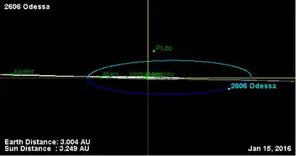 - Орбита астероида Одесса и его положение в Солнечной системе