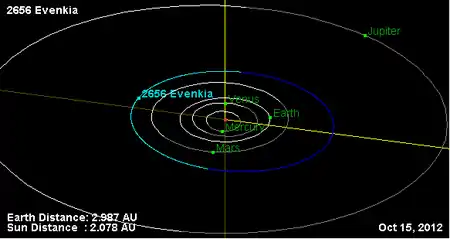 Орбита астероида Эвенкия и его положение в Солнечной системе