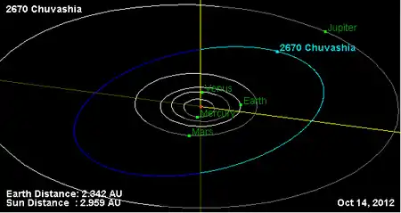 Орбита астероида Чувашия и его положение в Солнечной системе