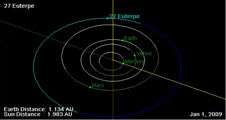 Орбита астероида Эвтерпа и его положение в Солнечной системе