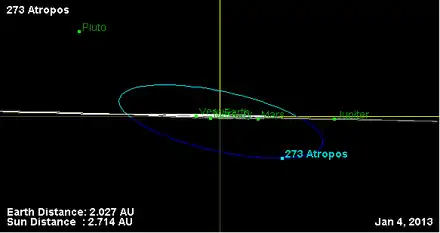 - Орбита астероида Атропа и его положение в Солнечной системе