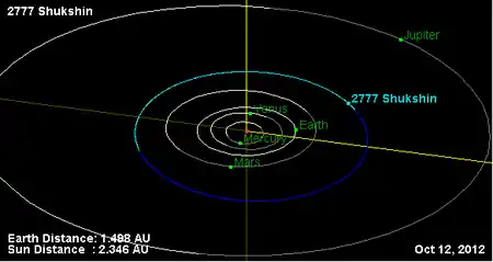 Орбита астероида Шукшин и его положение в Солнечной системе