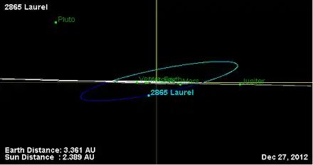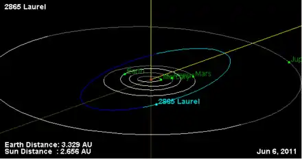 - Орбита астероида Лорел и его положение в Солнечной системе