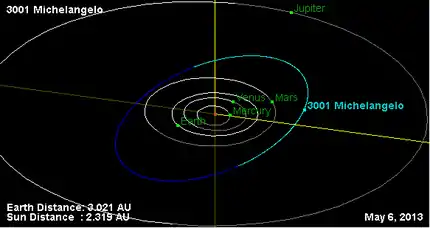 - Орбита астероида Микеланджело и его положение в Солнечной системе