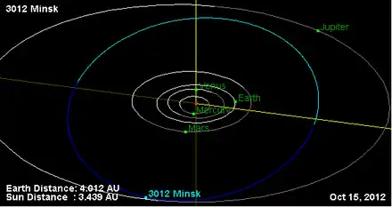 - Орбита астероида Минск и его положение в Солнечной системе