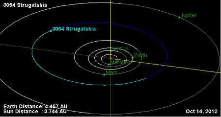 Орбита астероида Стругацкия и его положение в Солнечной системе