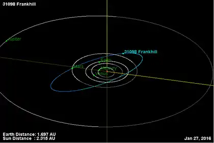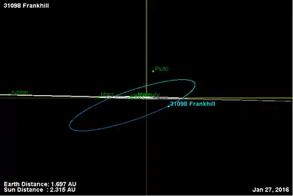 - Орбита астероида Фрэнкхилл и его положение в Солнечной системе