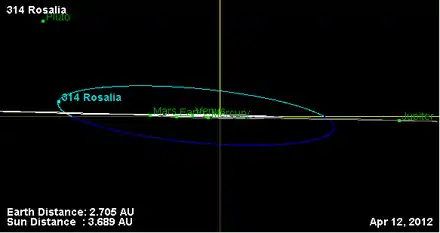 - Орбита астероида Розалия и его положение в Солнечной системе