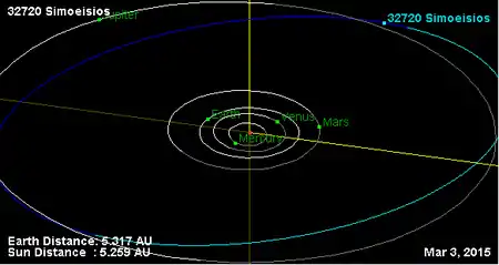 Орбита астероида Симойсей и его положение в Солнечной системе