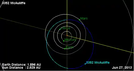- Орбита астероида Маколифф и его положение в Солнечной системе