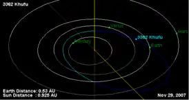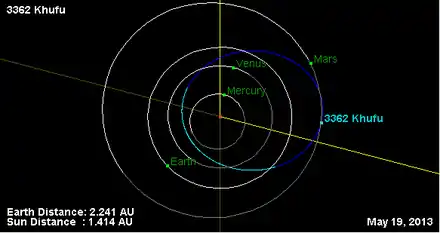 - Орбита астероида Хуфу и его положение в Солнечной системе