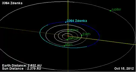 Орбита астероида Зденька и его положение в Солнечной системе