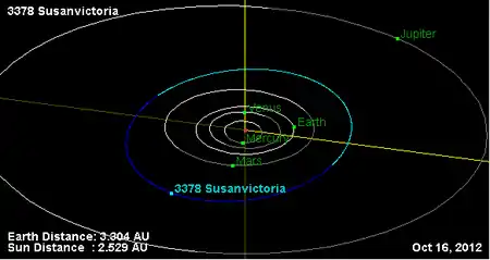 Орбита астероида Сьюзанвиктория и его положение в Солнечной системе