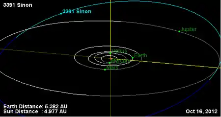 Орбита астероида Синон и его положение в Солнечной системе