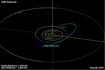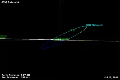 - Орбита астероида Сэтоути и его положение в Солнечной системе