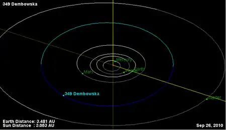 (349) Дембовска (итал. Dembowska) — крупный астероид главного пояса, принадлежащий к редкому спектральному классу R. Астероид был открыт почти полтора века назад 9 декабря 1892 года французским астрономом Огюстом Шарлуа во время работы в обсерватории Ниццы, Франция[2] и назван в честь барона Геркулеса Дембовски — итальянского астронома, внёсшего большой вклад в исследование двойных и кратных звёзд.