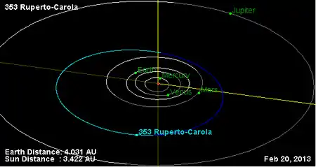 Орбита астероида Руперто-Карола и его положение в Солнечной системе