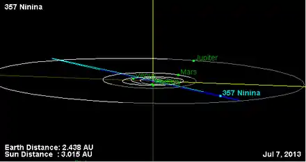 - Орбита астероида Нинина и его положение в Солнечной системе