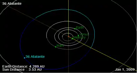 - Орбита астероида Аталанта и его положение в Солнечной системе