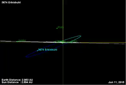 - Орбита астероида Эрбисбюль и его положение в Солнечной системе