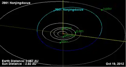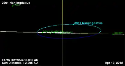 - Орбита астероида Нанкиндасюэ и его положение в Солнечной системе