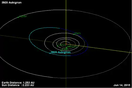 Орбита астероида Обиньян и его положение в Солнечной системе