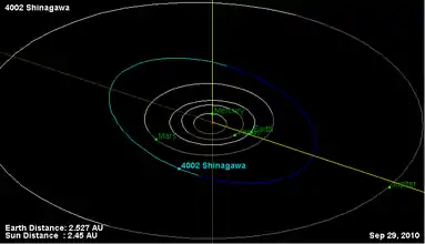 - Орбита астероида Синагава и его положение в Солнечной системе