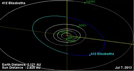 Орбита астероида Элизабета и его положение в Солнечной системе