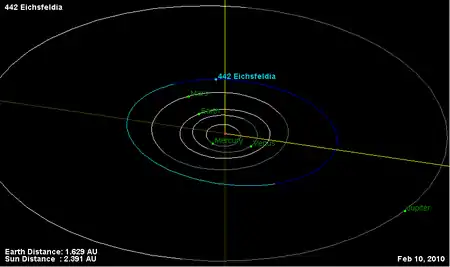 Орбита астероида Айхсфельдия и его положение в Солнечной системе