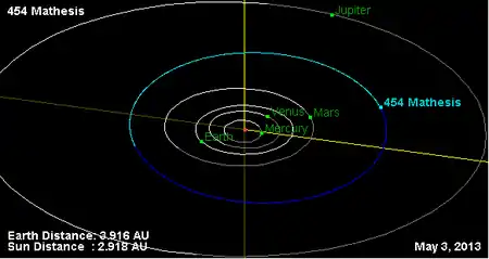 Орбита астероида Матезида и его положение в Солнечной системе