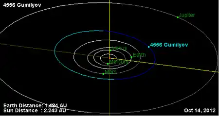 Орбита астероида Гумилёв и его положение в Солнечной системе