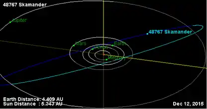 - Орбита астероида Скамандр и его положение в Солнечной системе