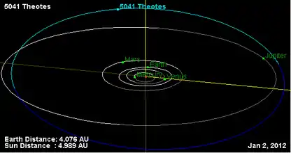 - Орбита астероида Теот и его положение в Солнечной системе