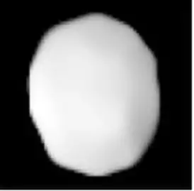 - Conrad (2007). Measurements of the short axis are less precise than the other two, but also involve a discrepancy between fitting the convolved and deconvolved images (241±40 км), and fitting the edges (191±114 км)