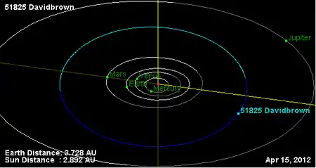 Орбита астероида Дэвидбраун и его положение в Солнечной системе