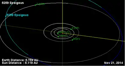 - Орбита астероида Эпегей и его положение в Солнечной системе