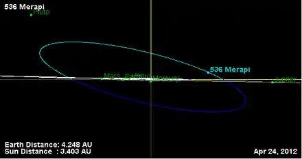 - Орбита астероида Мерапи и его положение в Солнечной системе