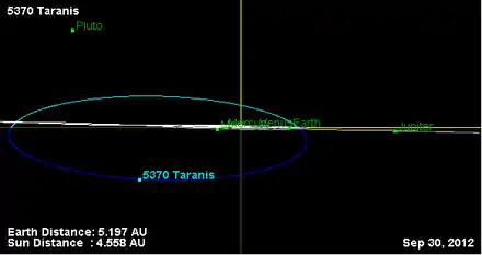 - Орбита астероида Таранис и его положение в Солнечной системе